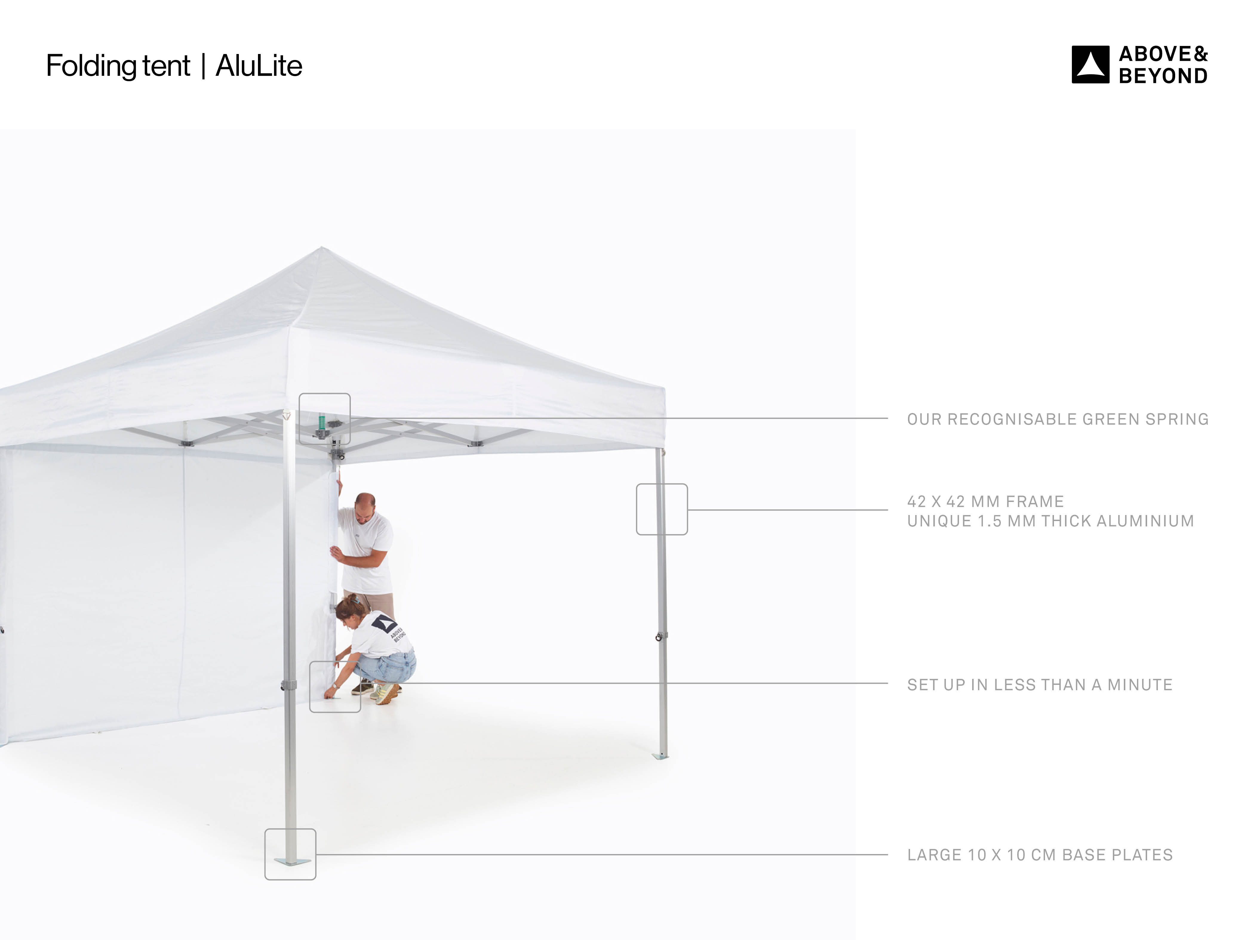 Dieses AluLite-Faltzelt ist die ideale Wahl für alle, die ein Zelt für den eher sporadischen oder semiprofessionellen Einsatz suchen. Alle seine Eigenschaften - insbesondere die Wandstärke von 1,5 mm - machen dieses Zelt zu einer perfekten Lösung für den kurzfristigen Einsatz.