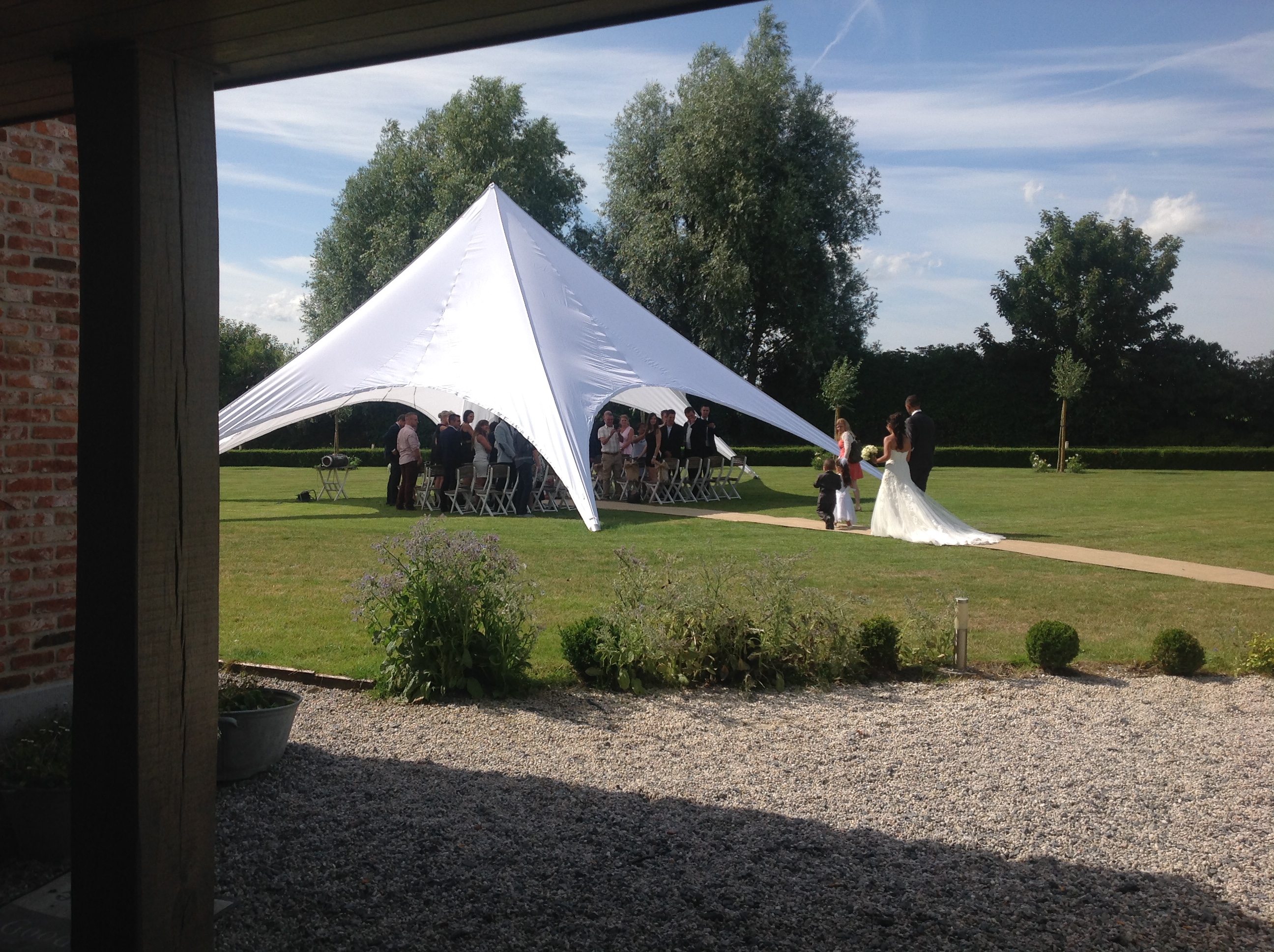 Das Sternzelt ist der perfekte Blickfang für jede Veranstaltung. Dank seiner markanten Höhe und eleganten Erscheinung fällt es schon von weitem ins Auge. Mit nur einer zentralen Stange und einem Dach, das an sechs Punkten verankert ist, steht das Sternzelt auch in Sachen Benutzerfreundlichkeit ganz oben auf der Liste.