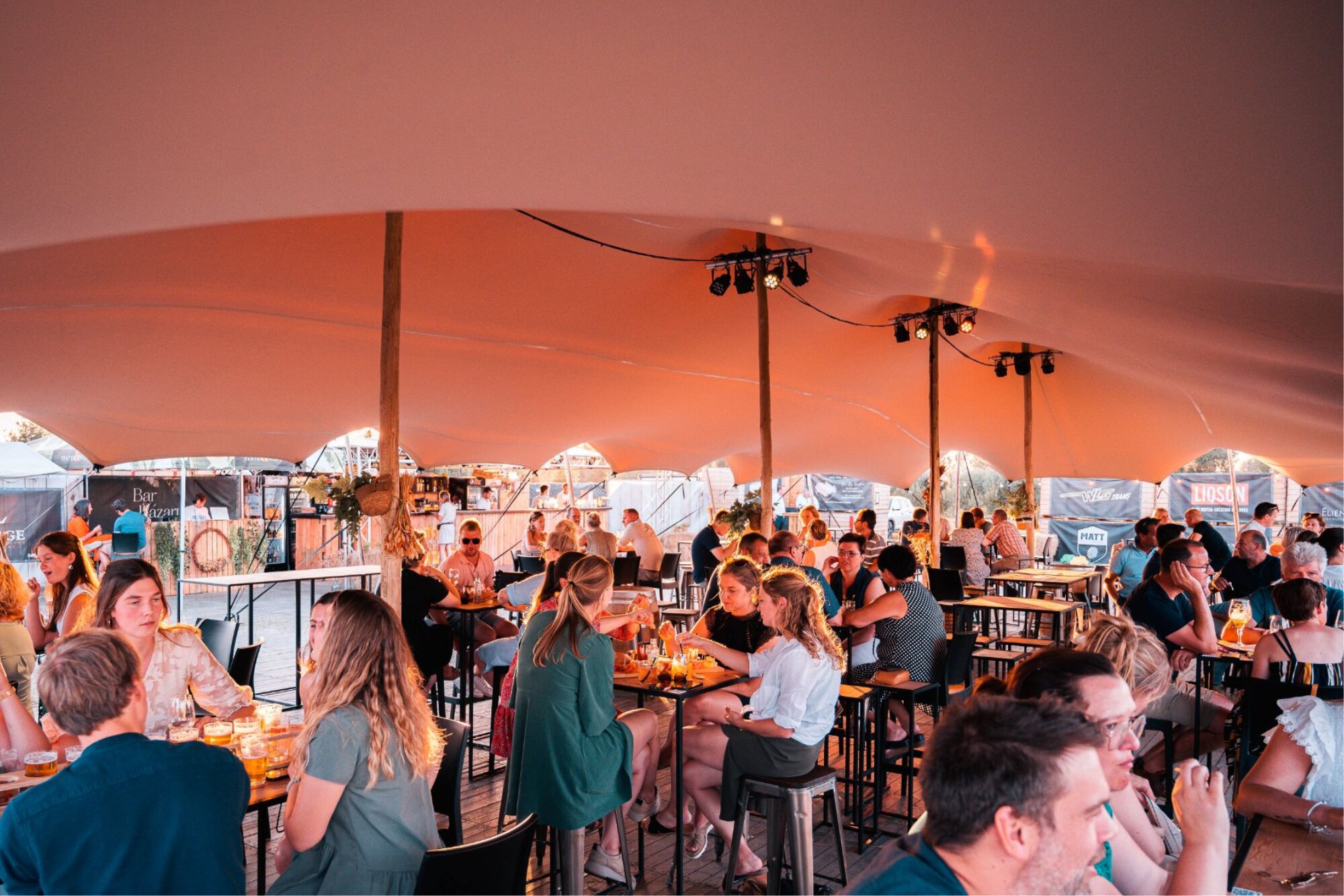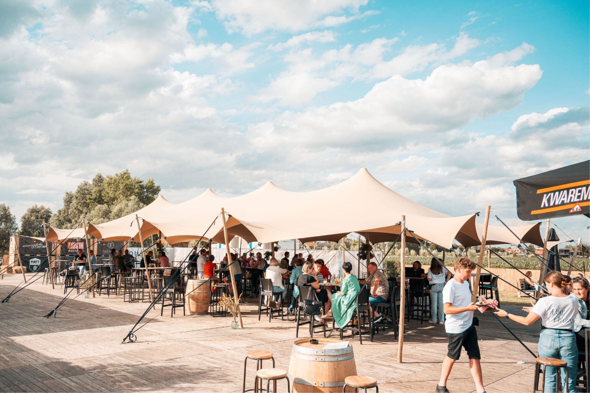 Wussten Sie, dass Sie ein Stretchzelt mit dem Logo Ihres Unternehmens, Ihrer Sponsoren oder Ihrer Marke bedrucken lassen können? So können Sie als Sponsor für eine Sommerbar zum Beispiel Ihr Zelt ausleihen, statt der Organisation Geld zuzustecken. Oder organisieren Sie Events? Dann können Sie die Erkennbarkeit Ihres Unternehmens oder Ihrer Marke dank eines Logos auf dem Stretchzelt erhöhen.