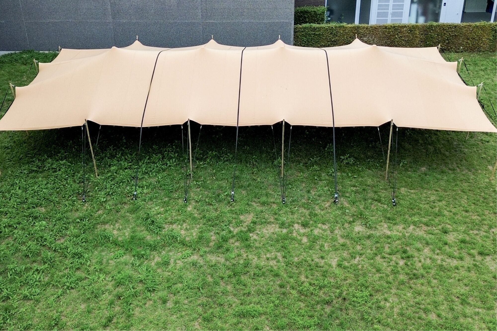 - Spielen Sie selber mit der Form des Zelts und die Position der Pfähle