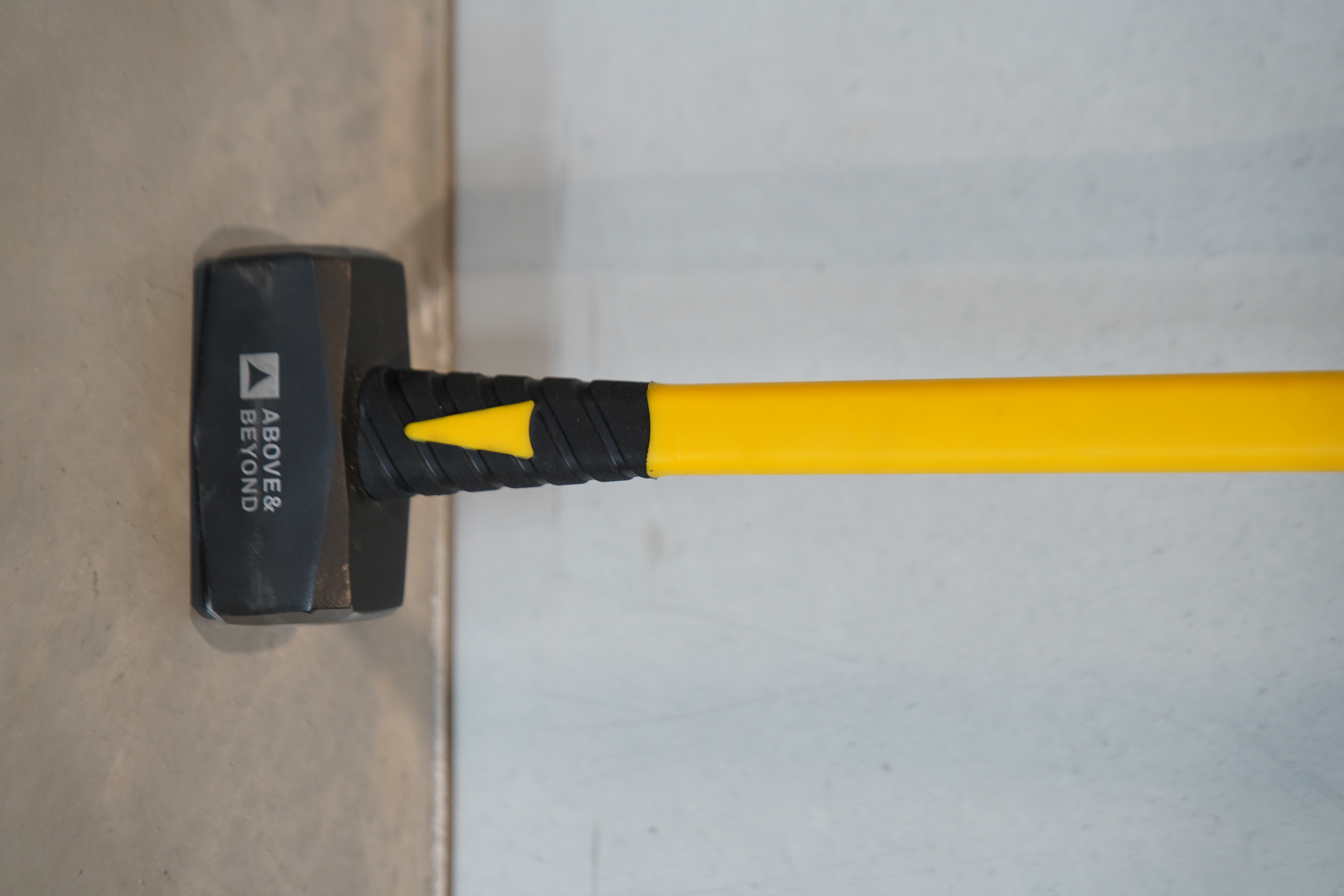 Der massive Stahlkopf (15,5 x 7 x 7 cm) sorgt für maximale Schlagkraft. Der 90 cm lange Glasfaserstiel bietet hervorragende Stoßdämpfung und angenehmes Handling. Das Material ist leicht, wetterfest und äußerst robust – perfekt für den Außeneinsatz. Der gummierte Griff liegt sicher in der Hand und verhindert ein Abrutschen.