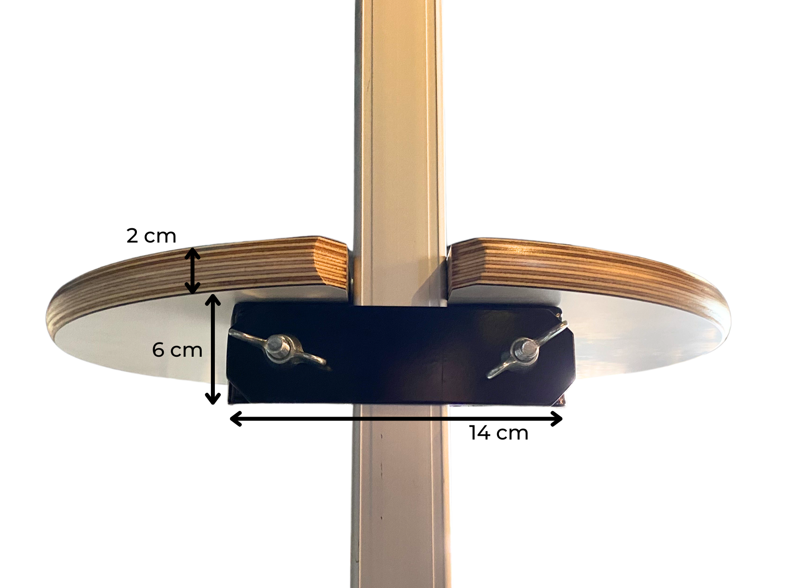 Die Tischplatte lässt sich dank der Klemme, die perfekt auf die 40 x 40 mm großen Vierkantstangen passt, leicht am Aluminiumgestänge unserer Flexxum-Faltzelte befestigen. Die Klemme wird mit Einsteckmuttern am Blatt befestigt, was eine sichere Befestigung gewährleistet und ein Lösen des Blattes verhindert. Die Flügelmuttern erleichtern die Befestigung der Schelle am Gestänge.