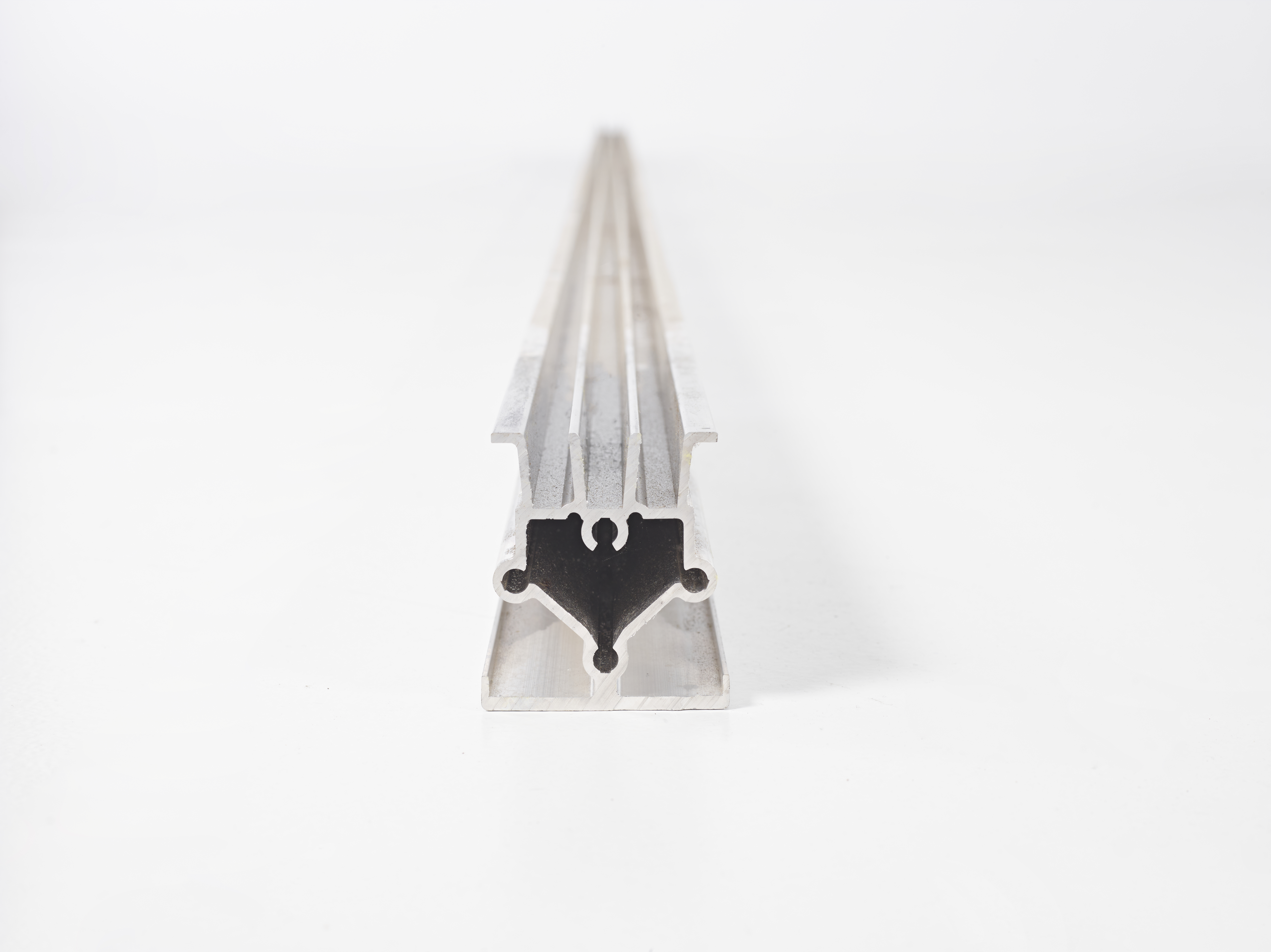 The profile of our ground beams is entirely self-designed and therefore unique in the market. It consists of two side channels and a central channel. The central channel provides just enough space for the side plates of two adjacent mounted cassettes, seamlessly connecting them. At the edges of the floor, the side plate of the floor part fits into the outer side channel of the ground beam.