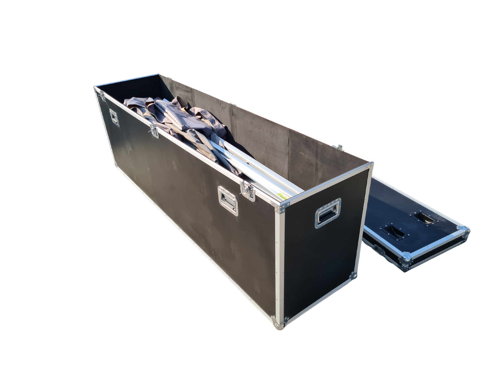 The extra large flight case has a size of 220 x 55 x 80 cm and a volume of 0.97 m³. Also discover the small, medium and large flight cases.