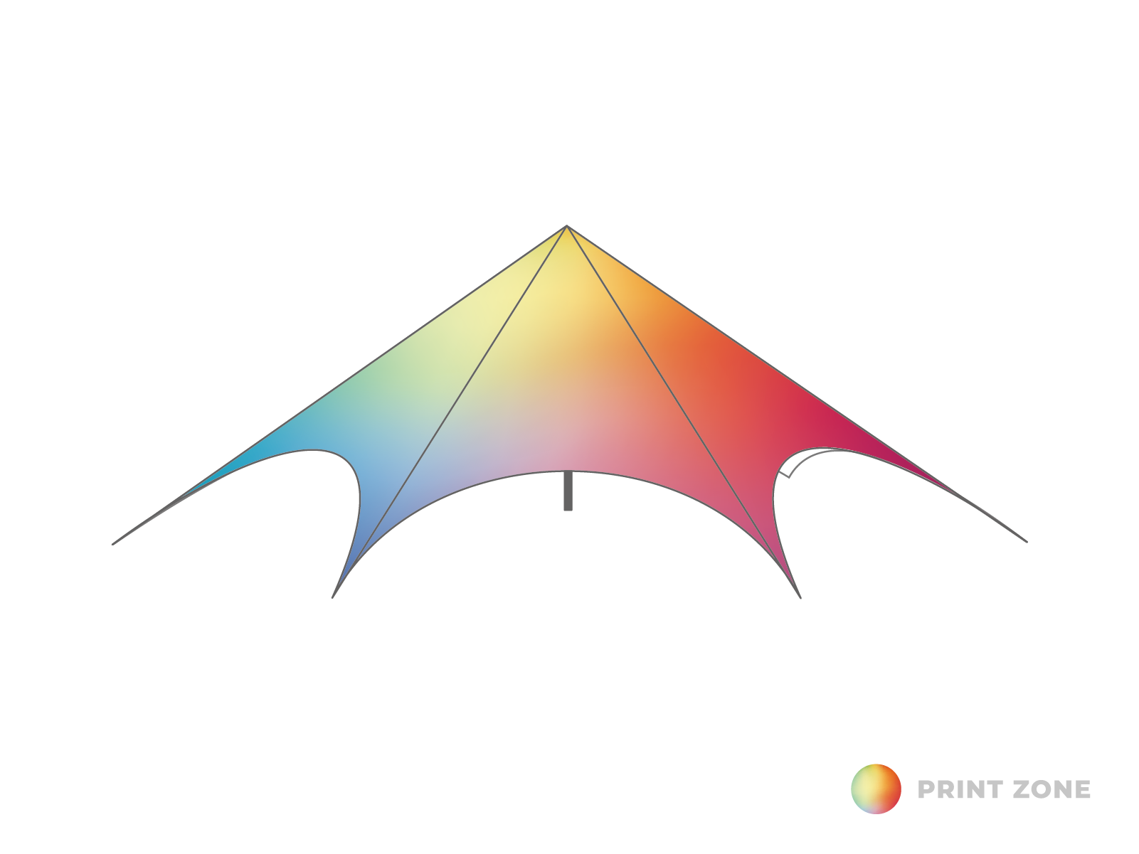 Both the roof canvas and the side walls are available to order with personalized printing (digital sublimation printing). Consequently, the star tent is often used as a promotional tent at events.