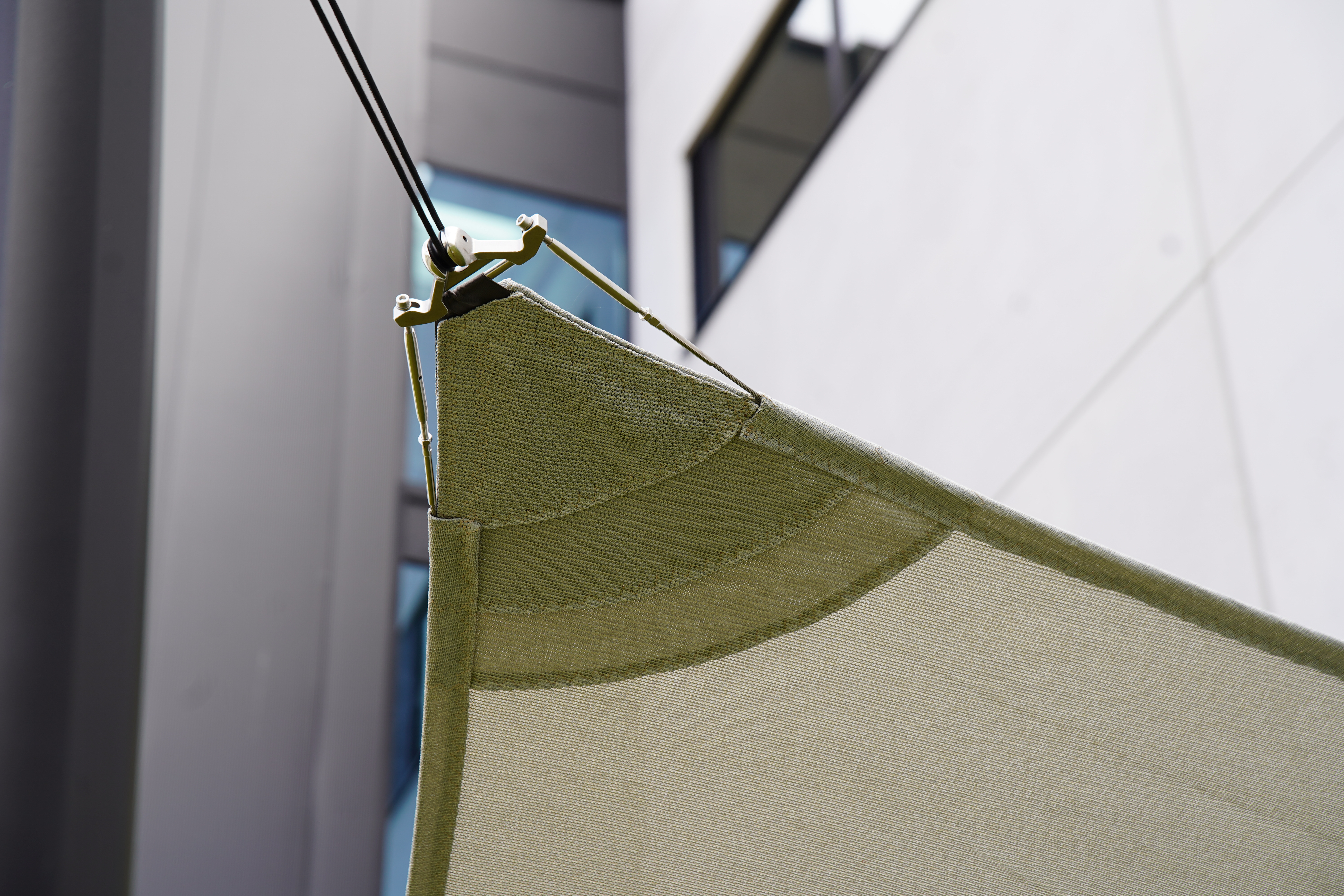 The keder wall anchoring is a unique system that creates a seamless and watertight transition between the sail and the facade — no gap, no rain ingress and a sleek aesthetic finish. This system is technically and visually unique on the market.
