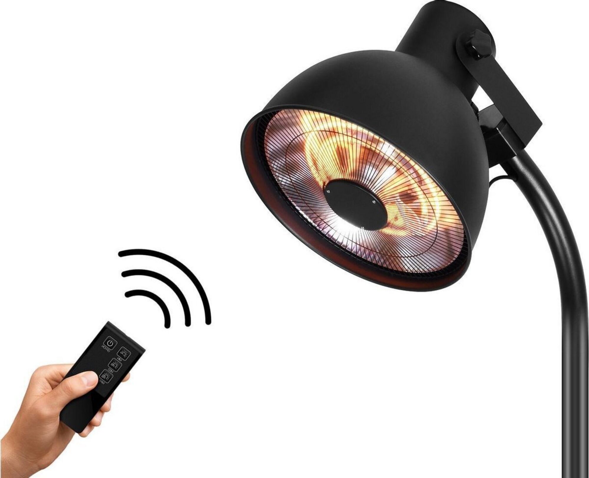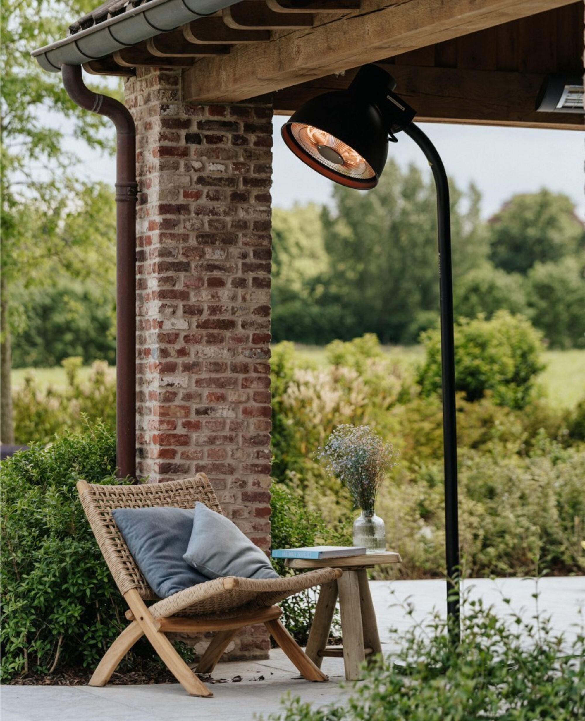 This retro electrical patio heater, our Volcano 2000, heats your terrace or veranda without effecting the arrangement of the location. Thanks to the stylish black casing of powder coated steel, this heater is waterproof as well. The diameter of the heating head is not less than 40 cm. Thanks to the three heat levels (800, 1200 or 2000 Watt) with touch control, you can choose to which extend the heater has to produce warmth. Or you can just adjust the heat level of the Volcano 2000 from your chair, thanks to the included remote control. Moreover, this heater is extremely safe, because it automatically switches off when it falls down.