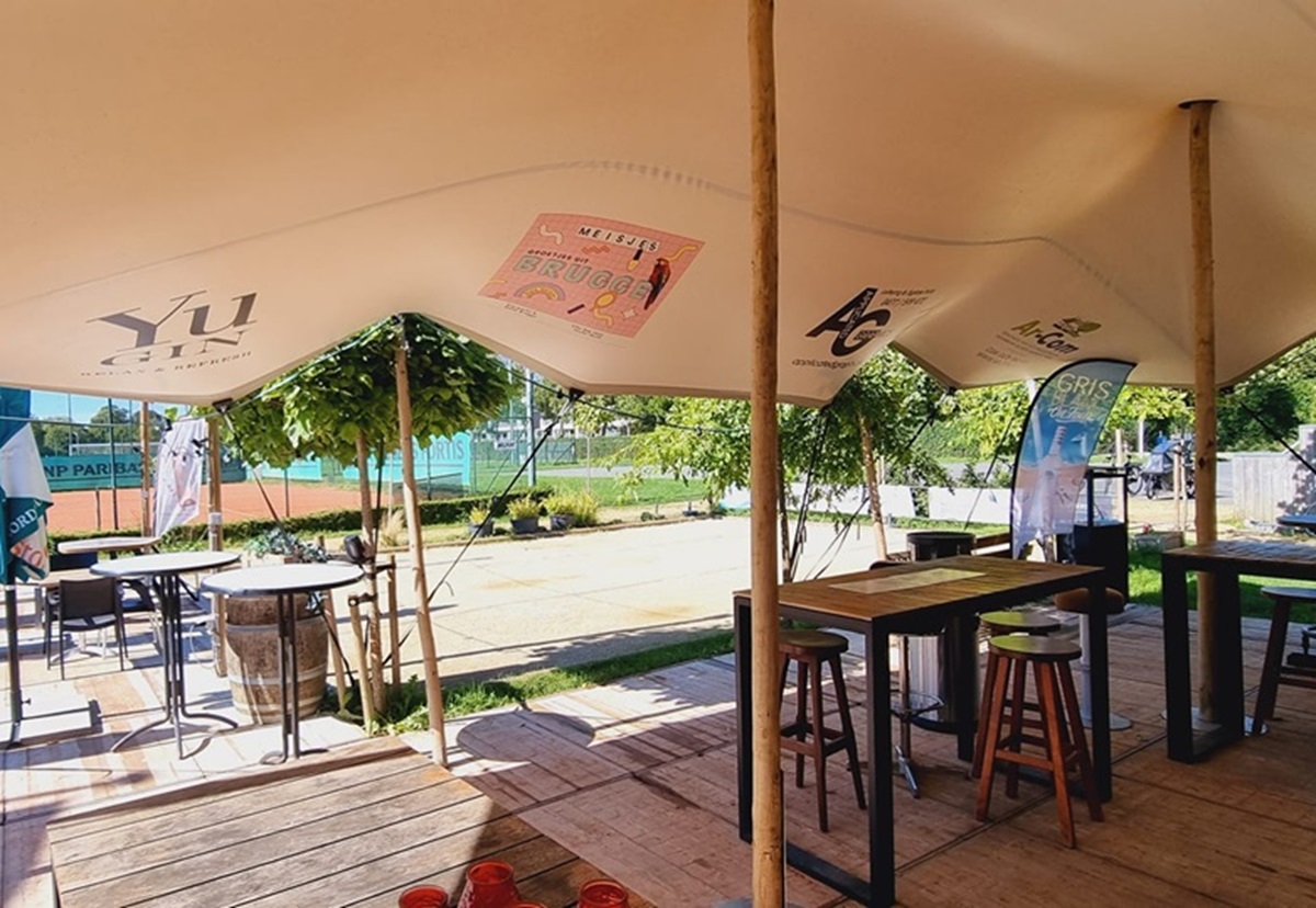 A stretch tent with a logo function as a subtle yet effective promotional tool. The logo is displayed unobtrusively, creating a positive brand association for those under the tent.
