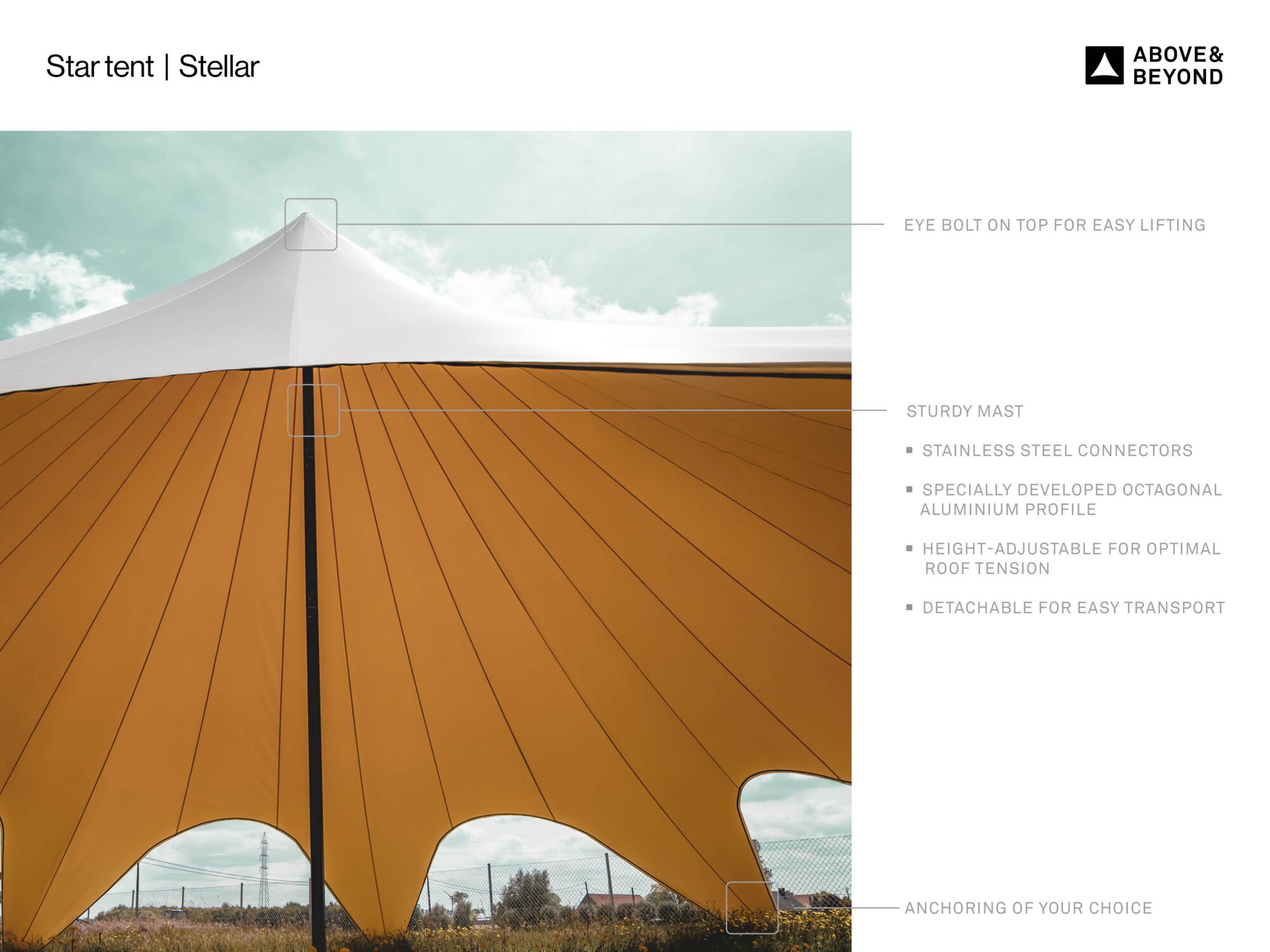 Every detail of the starshade tent is of high quality, from the innovative design to the durable construction. Discover all the benefits and qualities of the star tent and make sure this eye-catcher is not missing from your event.
