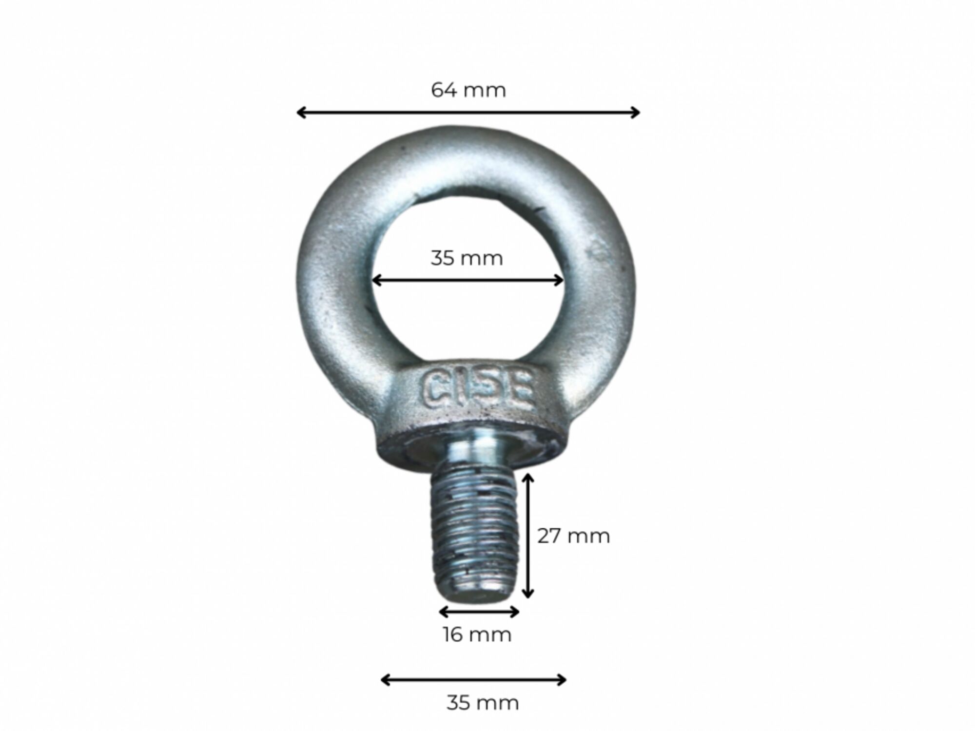 The eye bolt M16 is made of high-quality galvanised steel with high pulling force resistance. The eye bolt is in accordance with the DIN 580 norm, which determines the strict standards lifting bolts, eye bolts, ring screws and lifting screws have to meet for safe usage.