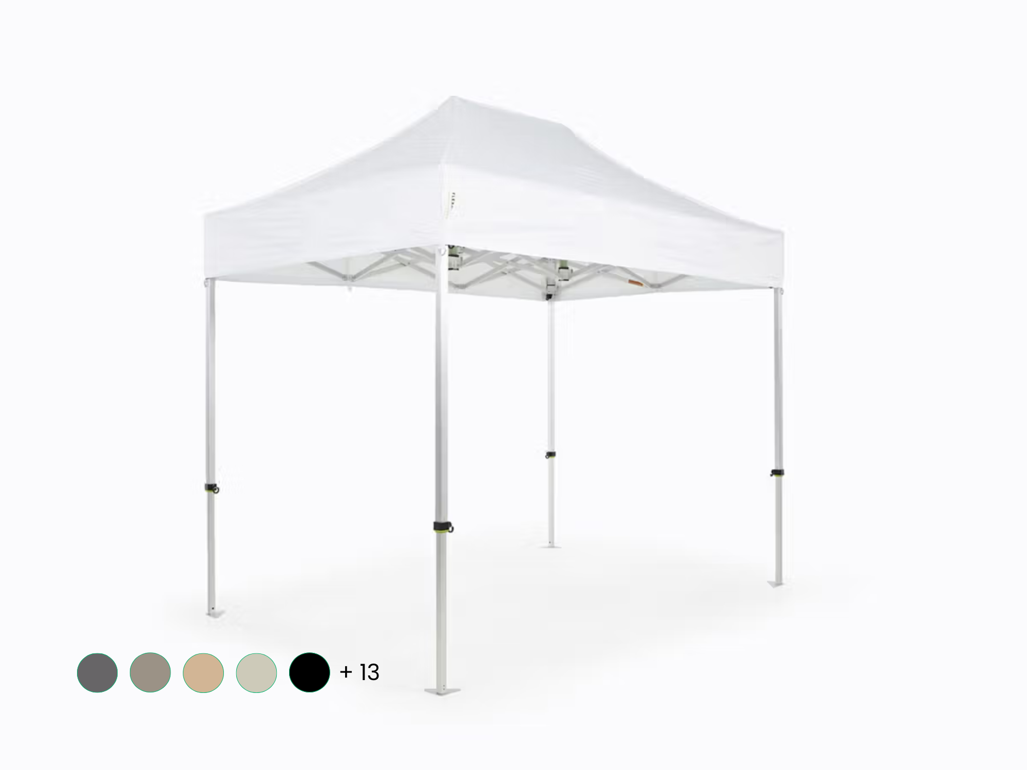Thanks to its aluminium frame with its square 40 x 40 mm profile (which is very compact), the folding tent is a tent you can rely on. A square frame is much stronger than a hexagonal or octagonal frame, as the more angles the frame has, the weaker it is. In addition, all of the angles in our frame have extra reinforcement, which increases the strength of the tent. The 2.5-millimetre wall thickness is unique among folding tents.