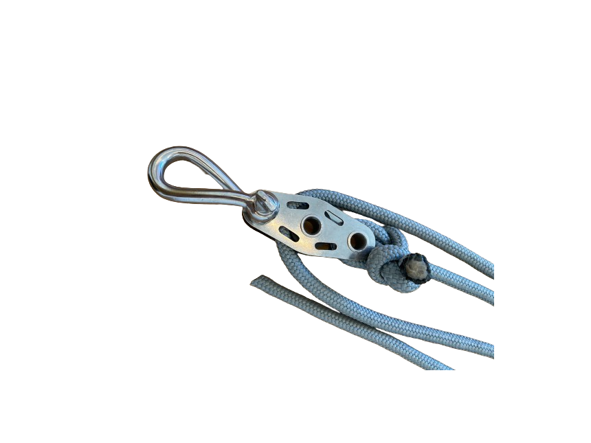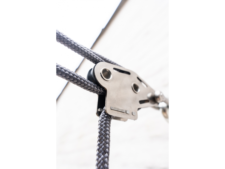 Thanks to the use of high-quality 8 mm thick nylon rope, you are assured of durability and strength. With a length of 1.35 meters, our pulley system is perfectly suitable for various applications. The twisted shackle at one end ensures that the pulley system remains beautifully positioned relative to the sail.