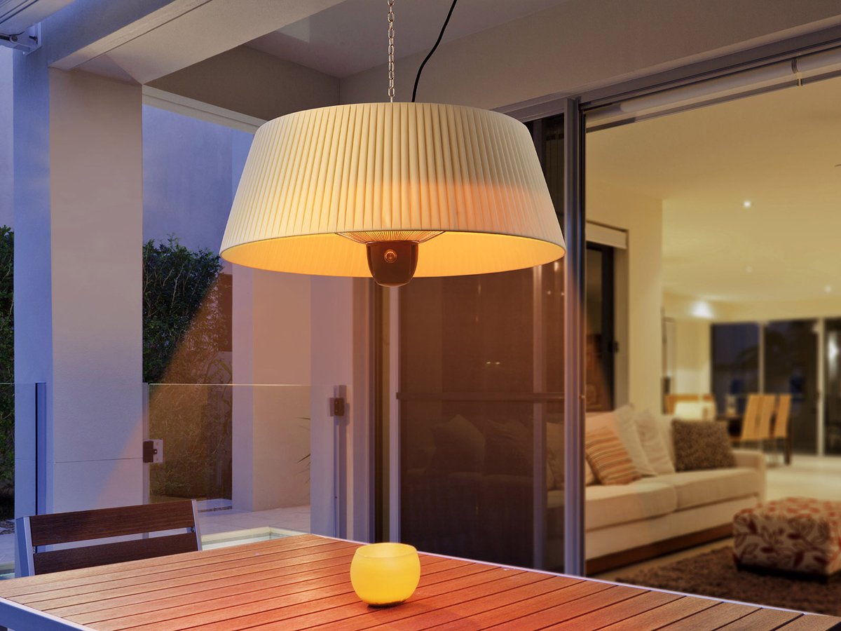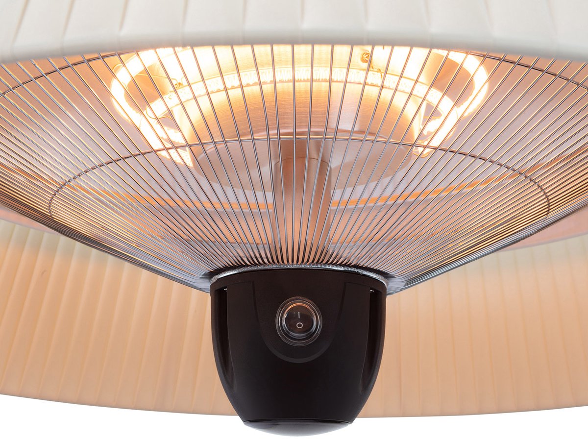 Vous pouvez accrocher ce chauffage de terrasse électrique dans votre tente ou à votre parasol. Ou ailleurs encore, car les possibilités sont innombrables vu que ce chauffage convient à la fois pour un usage intérieur et extérieur. La télécommande incluse vous permet de contrôler le chauffage sans bouger de votre siège. Grâce aux trois positions de réglage du chauffage, vous pouvez choisir la quantité de chaleur que vous voulez générer : 800, 1200 ou 2000 watts. Le chauffage Halo est doté d'un boîtier en aluminium en finition noire mate.
