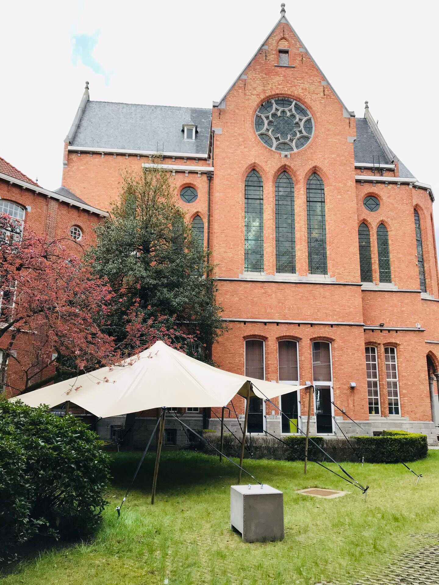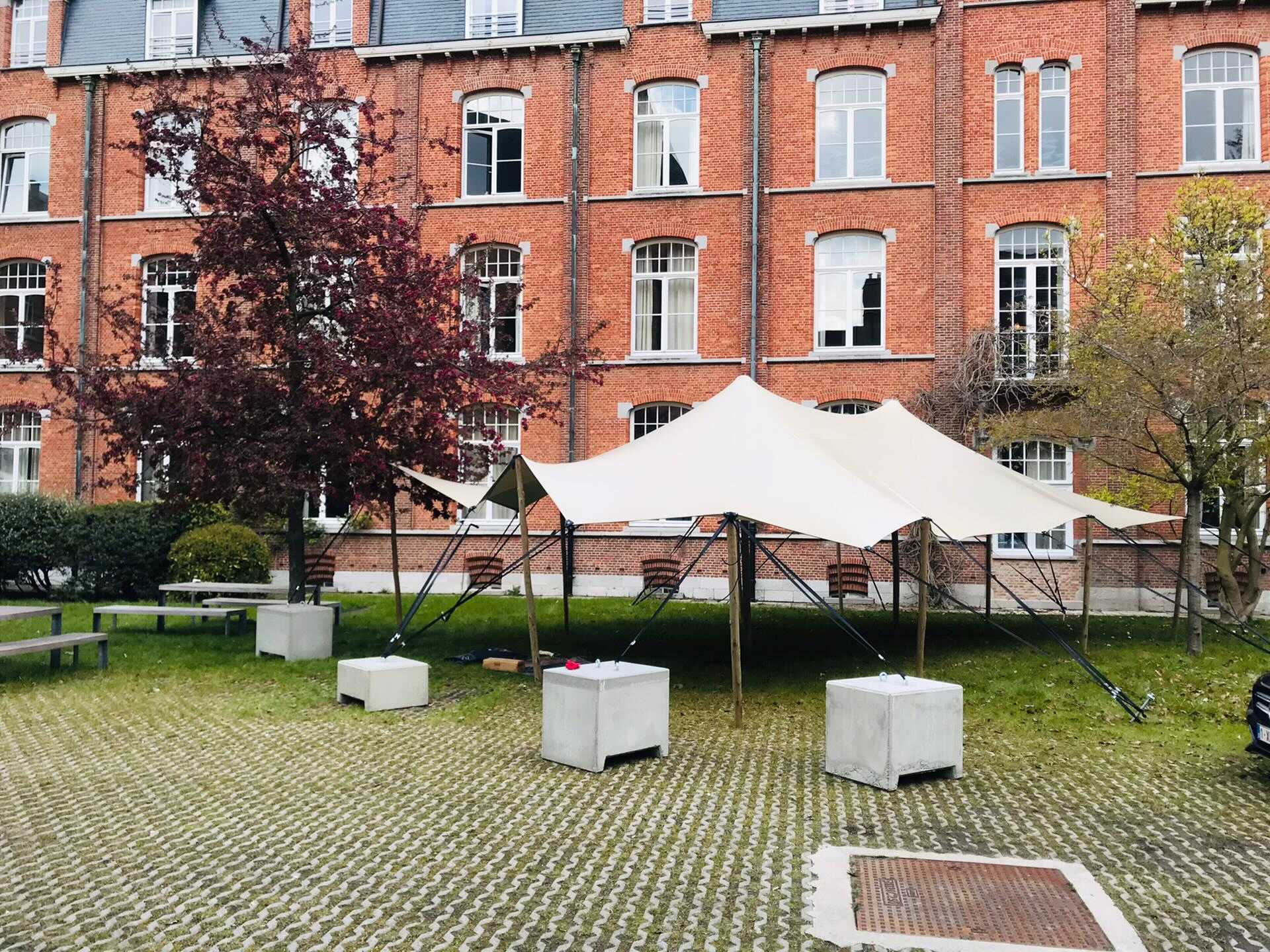 Salle de classe extérieure avec couverture tendue : apprendre en plein air en toute flexibilité