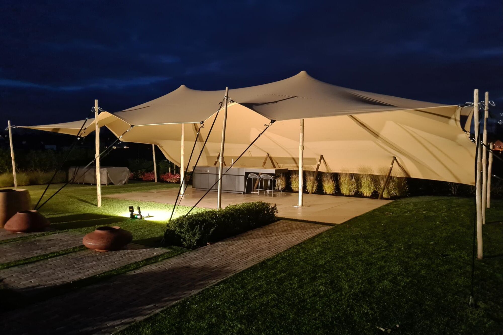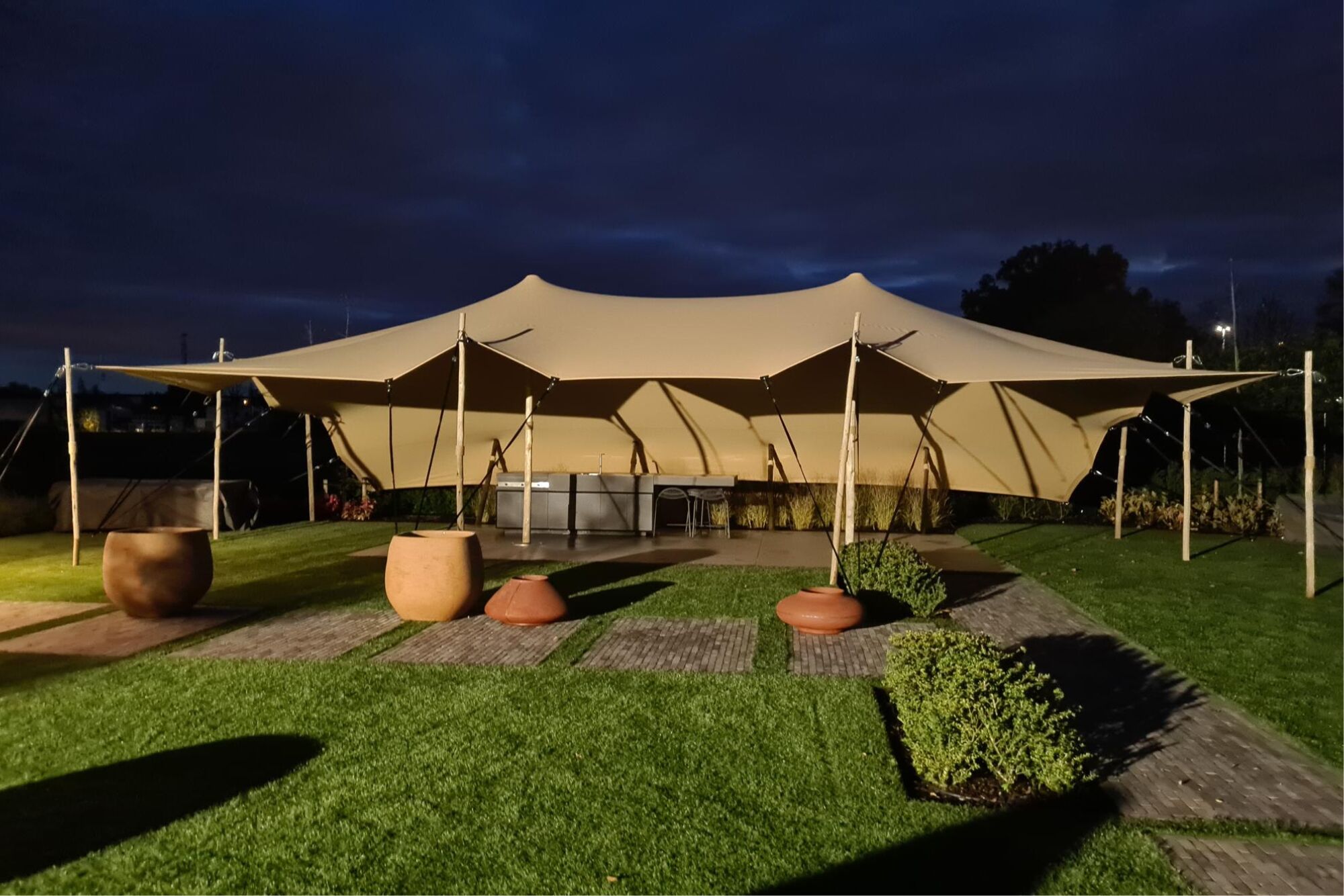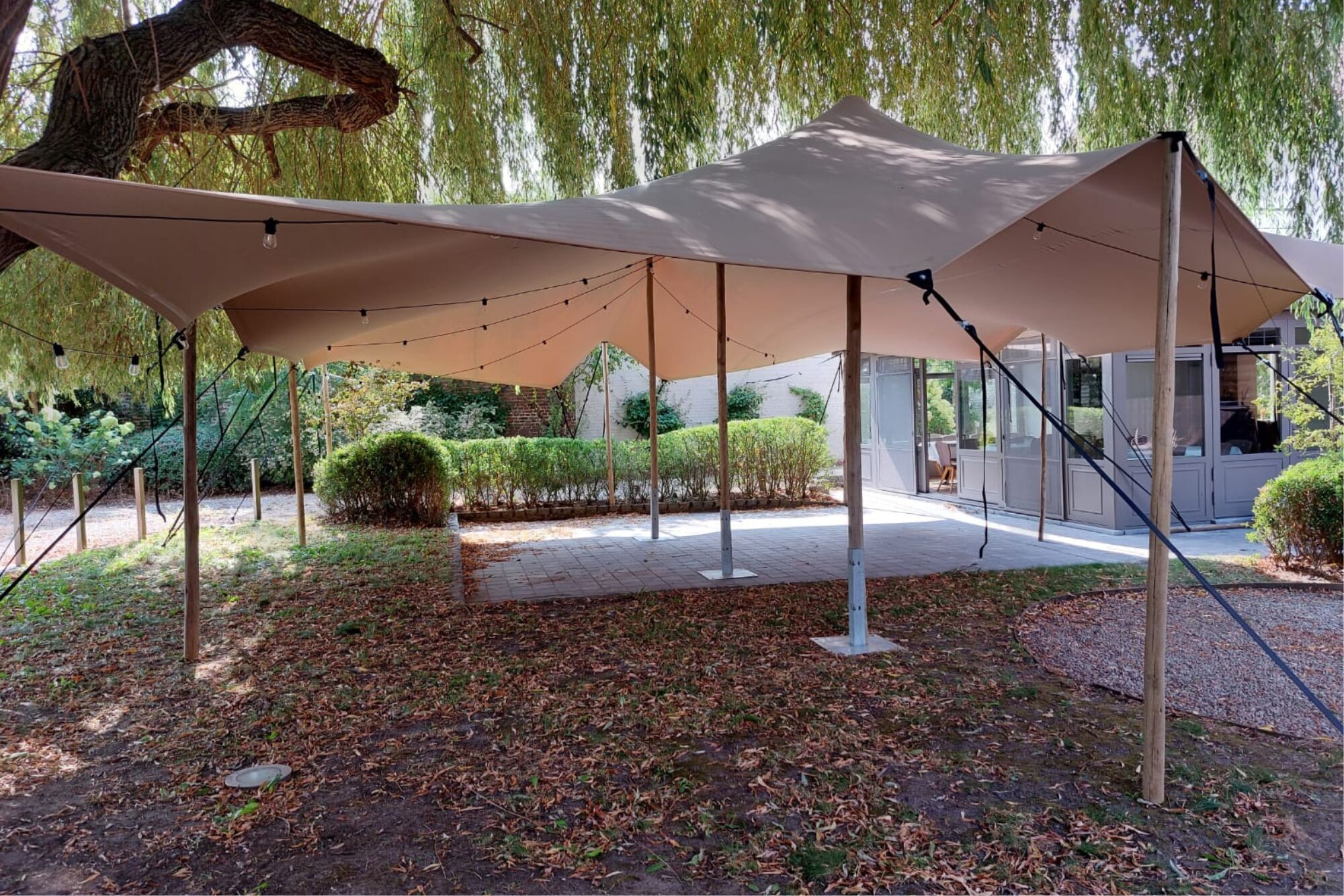 Découvrez la polyvalence et le charme élégant de nos tentes stretch professionnelles ! Que vous organisiez un événement en plein air, une fête, un bar d'été, une terrasse ou un jardin, nos tentes stretch, également appelées tentes nomades, offrent la solution parfaite pour transformer votre espace et créer une atmosphère inoubliable. Avec leur design unique, leurs matériaux de haute qualité et leurs installations personnalisables, nos tentes extensibles sont le choix idéal pour toutes les occasions. Que vous souhaitiez profiter d'un cadre ouvert et aéré par beau temps, vous abriter du vent ou créer un abri confortable en cas d'averse, nos tentes stretch s'adaptent sans effort à vos besoins grâce à nos mâts mobiles en bois et en aluminium. Laissez-vous inspirer par les possibilités infinies et faites de votre événement une expérience inoubliable grâce à nos tentes stretch polyvalentes.