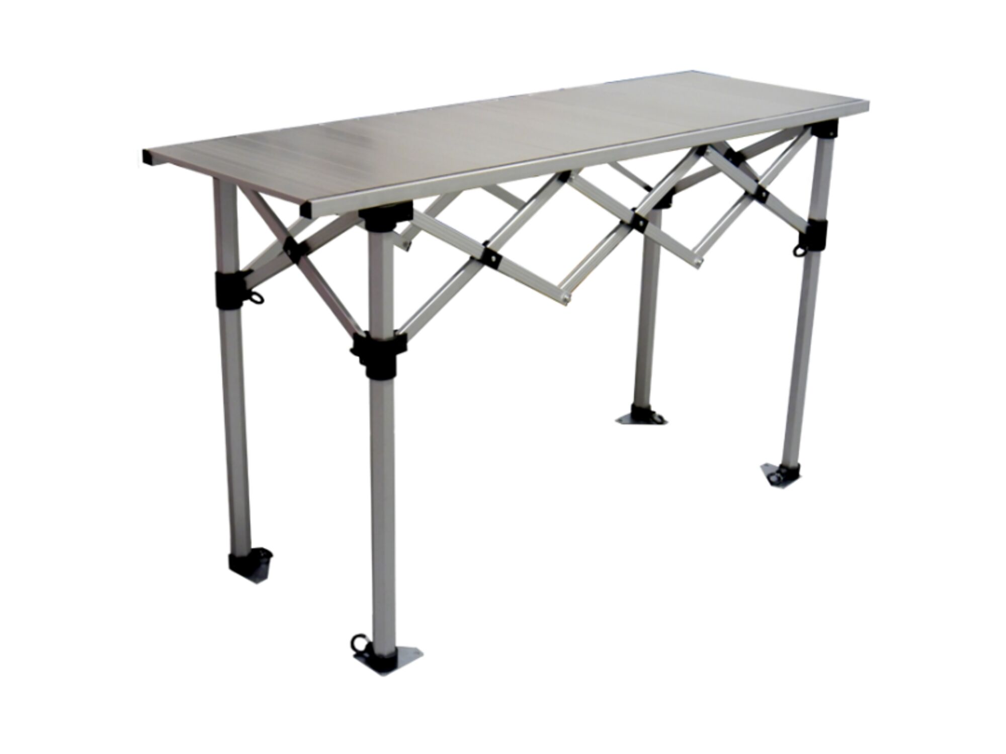 Het frame en het opvouwbare tafelblad (beide uit aluminium) worden standaard in handige draagtassen uit polyester geleverd. Geschikt voor binnen- en buitengebruik.