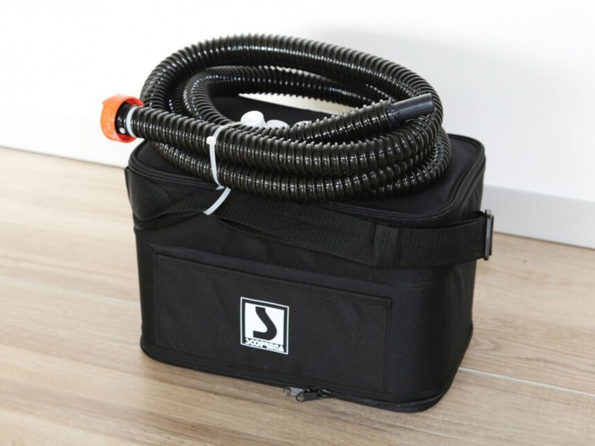 Deze pomp kan worden gebruikt om onze Airspace opblaasbare tent op te blazen. Deze batterijpomp wordt geleverd inclusief lader en draagtas. De te bereiken druk kan worden ingesteld en zodra de ingestelde druk bereikt is, wordt de pomp automatisch uitgeschakeld. Naast deze batterijpomp is er ook een elektrische pomp verkrijgbaar.