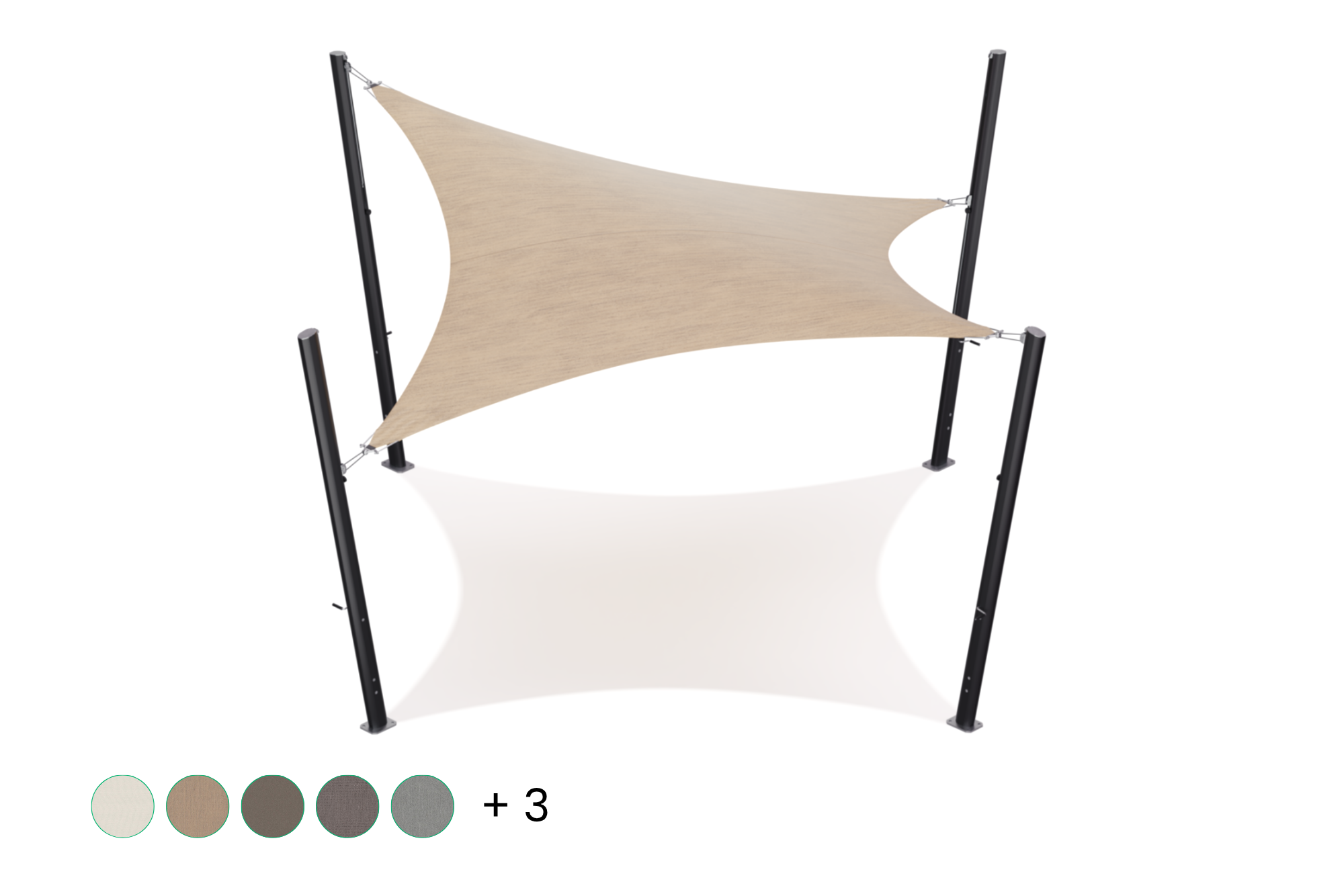 Dit schaduwdoek is vervaardigd uit hoogwaardig Sunbrella acryl (260 g/m²), dat licht is in gebruik maar tegelijk uitzonderlijk sterk en duurzaam.