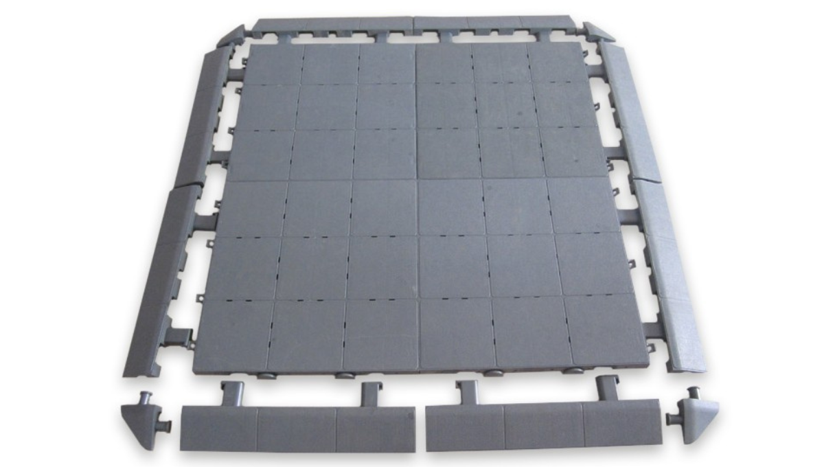 De modulaire kunststofvloer is een extreem sterke vloer en daarenboven erg onderhoudsvriendelijk. De vloertegels kunnen afgewerkt worden met randen en hoeken om één geheel te creëren. Zo is de vloer toegankelijker voor bijvoorbeeld rolstoelgebruikers.