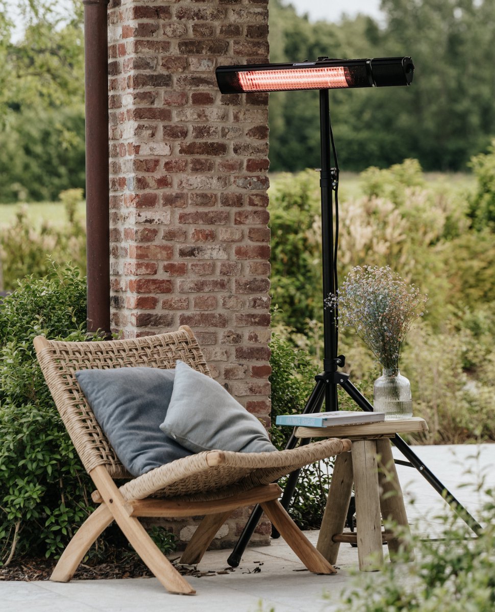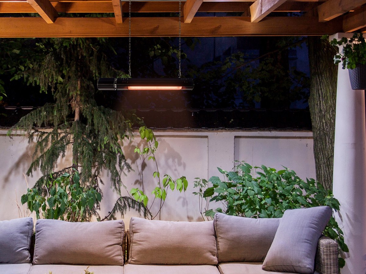 Dankzij de føro infrarood terrasverwarmer geniet je ‘s avonds laat nog steeds van de gezellige warmte op je terras. De terrasverwarmer heeft een vermogen van 2000 W en kan een oppervlakte van 6 m² verwarmen. Er is ook een handige afstandsbediening inbegrepen waarmee je vanop afstand de intensiteit kan veranderen. Er zijn 3 standen voorzien op het toestel: laag 1000 W, gemiddeld 1500 W, hoog 2000 W. De infrarood terrasverwarmer moet minimum op 1,8 m hangen, de ideale hoogte is 2,4 m.